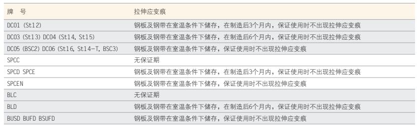 各牌號(hào)拉伸應(yīng)變痕如下表的規(guī)定。