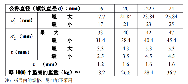 鋼結構用扭剪型高強度墊圈的規格、尺寸及重量